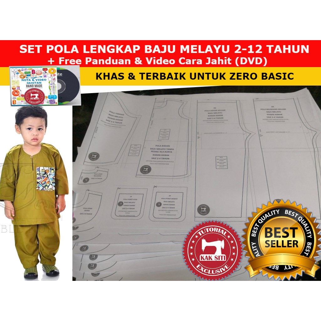 3 Set Pola Siap Baju Melayu Kanak2 Video Panduan Jahit Dvd Shopee Malaysia